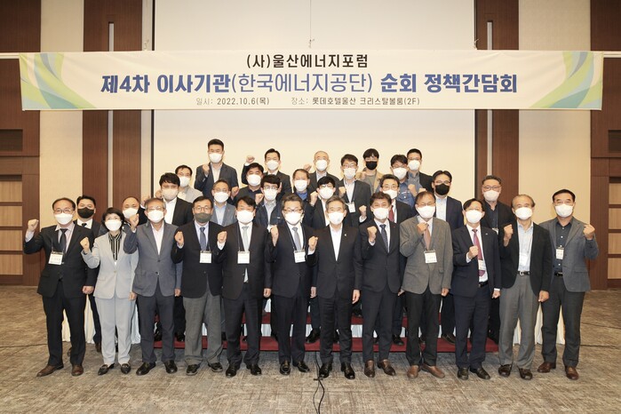 이번 간담회에는 울산에너지포럼의 공동대표인 김영문 동서발전 사장과 편상훈 울산연구원장, 안효대 울산 경제부시장, 심창호 에너지공단 부이사장 등 에너지포럼 회원사 약 60여명이 참석했다.
