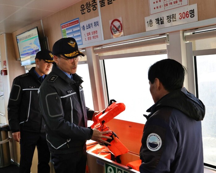 특히 독도와 울릉도를 운항하는 여객선에 탑승해 구명조끼, 비상구조선, 구명벌 등 안전 장비를 중점 점검했다.
