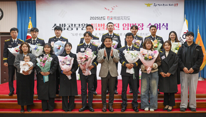 이번 특별승진은 SAFE대상, 화재 대응 분야, 우수 구조대원, 생명보호구급대상 등 소방청 주관 4개 분야와 도 주관 강원 최고 소방관 등 총 5개 분야에서 탁월한 성과를 거둔 대원을 선발해 추진했다.