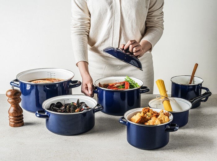 2세대 법랑냄비는 기존보다 가벼워지고, 최근 트렌드에 맞게 가스레인지 뿐 아니라, 인덕션과 식기세척기 사용도 가능하게 만들어졌다.