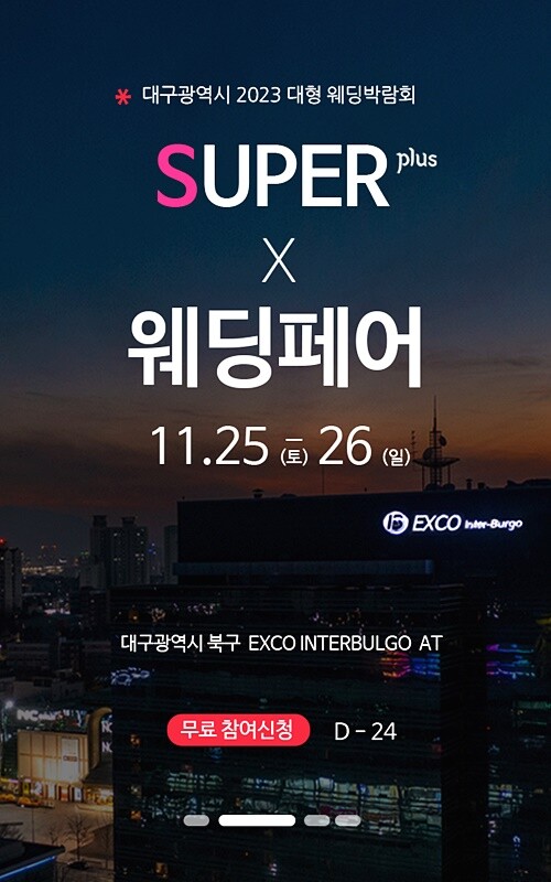 한편, 대구웨딩박람회는 엑스코 인터불고 호텔에서 이달 25일부터 26일까지 단 이틀간 열릴 예정이다.