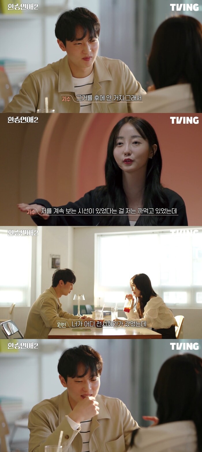 9일 오후 4시에 공개된 티빙 '환승연애2'에서는 원빈과 지수의 대화가 그려졌다.