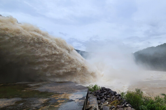 | ▲ 중부지역을 중심으로 많은 비가 쏟아지는 9일 오후 강원 횡성군 횡성댐이 수문을 열고 거센 물살을 쏟아내고 있다. 2022.8.9 (사진=연합뉴스) |
