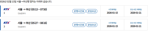 한편, 코레일은 오는 15일(목)부터 5일간 설 명절 승차권 예매를 시작한다. 15일(목)부터 이틀간은 교통약자 사전 예매를, 이어 19일(월)부터 사흘간은 모든 국민을 대상으로 일반 예매를 진행한다.