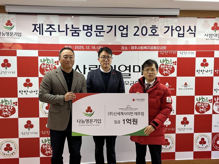 [매일안전신문=김진섭 기자] 신세계사이먼이 제주 지역사회에서 나눔 실천을 이어온 공로를 인정받아 제주사회복지공동모금회 '나눔명문기업'에 이름을 올렸다.