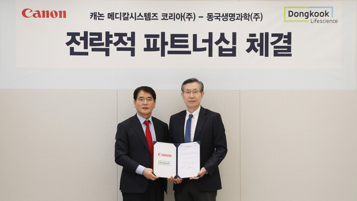 동국생명과학이 캐논 메디칼시스템즈 코리아㈜와 국내 의료 영상 진단 장비 판매 및 서비스를 위한 전략적 파트너십을 체결했다고 20일 밝혔다