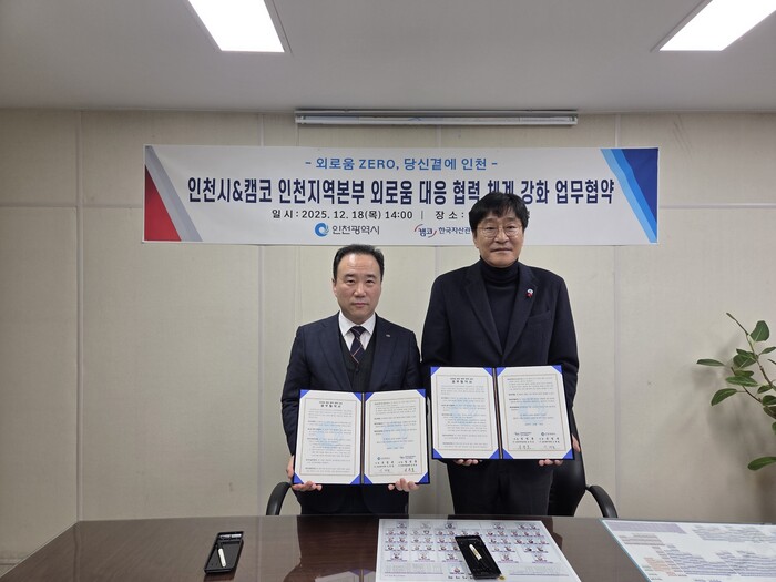 인천시가18일 캠코(한국자산관리공사) 인천지역본부와 외로움 돌봄 지원사업 추진' 및 '지역사회 발전사업'을 위한 업무협약을 체결했다고 밝혔다.