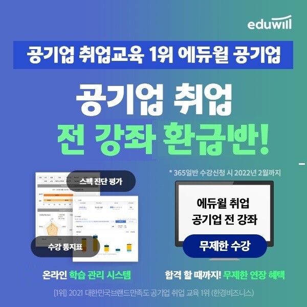 종합교육기업 에듀윌이 공기업 취업 NCS 유형별 맞춤 대비를 돕는 ‘전 강좌 환급반’ 과정을 운영한다고 밝혔다.