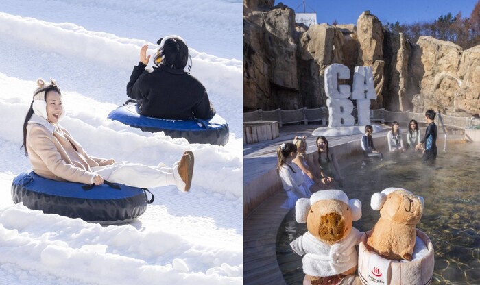 캐리비안 베이는 ‘윈터 스파 캐비’로 운영 중이다. 카피바라 캐릭터 테마로 꾸며진 실내외 스파와 사우나, 550미터 길이의 유수풀이 모두 따뜻하게 운영돼 겨울 물놀이 장소로 주목받고 있다.