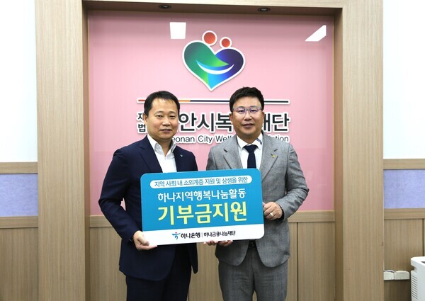 하나은행 천안중앙지점은 18일 천안시복지재단에 천안시 취약계층 지원을 위한 후원금 200만 원을 전달했다.