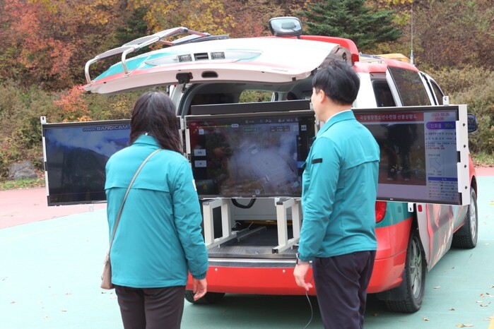 | ▲ 재난대응 안전한국 훈련 중 드론으로 화재발생 상황을 살펴보는 모습이다. <사진= 한국청소년활동진흥원 제공> |