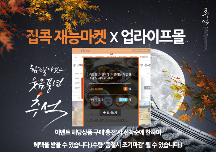 업라이프몰이 집콕 재능마켓과 콜라보를 진행하여 추석 맞이 프로모션을 마련했다.