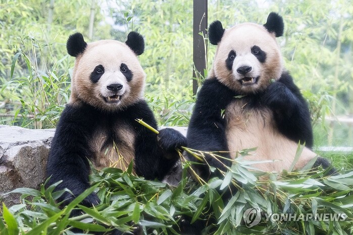 | 에버랜드에서 생활 중인 루이바오, 후이바오 (사진=연합뉴스) |