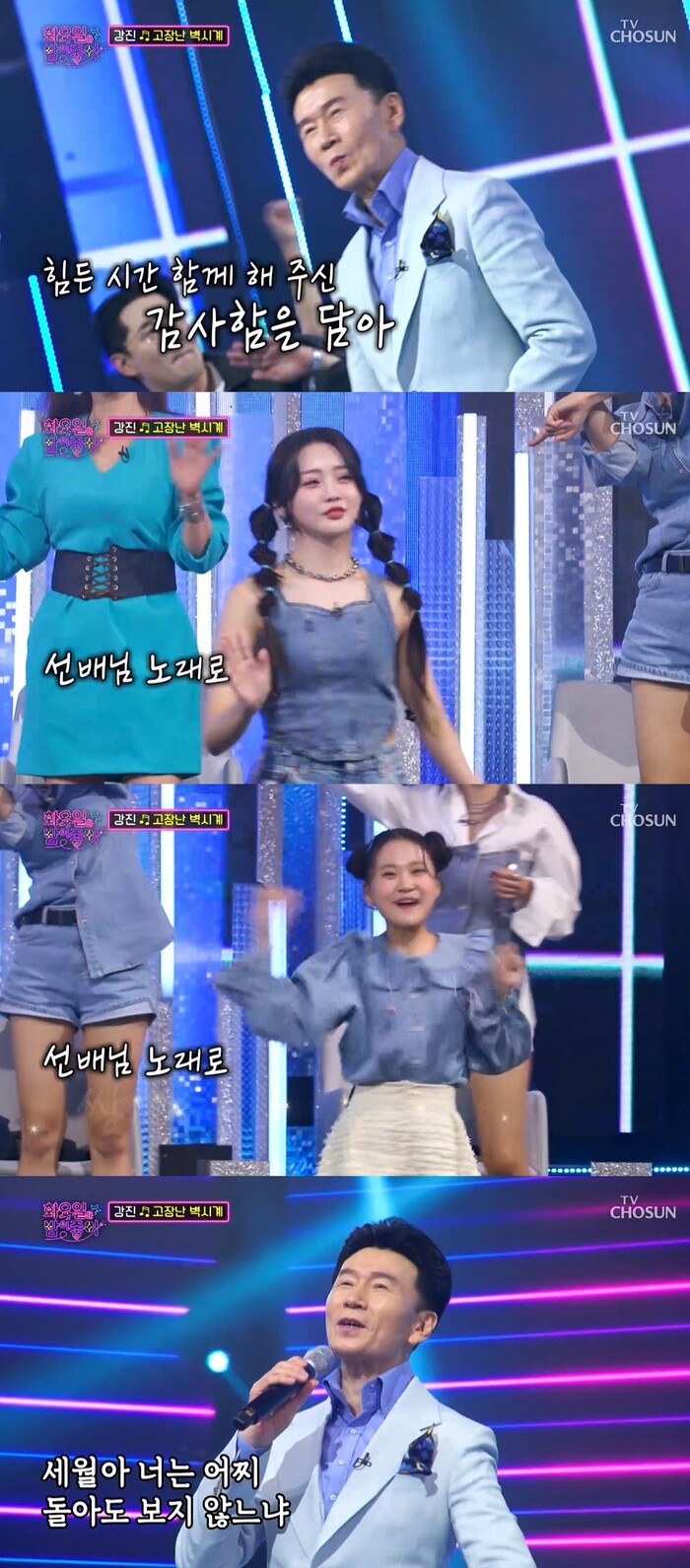 지난 방송에서는 '청춘은 바로 지금' 특집으로 문희경, 강진, 선우용여, 박강성이 출연해 그리운 청춘을 소환하는 무대를 펼쳤다.