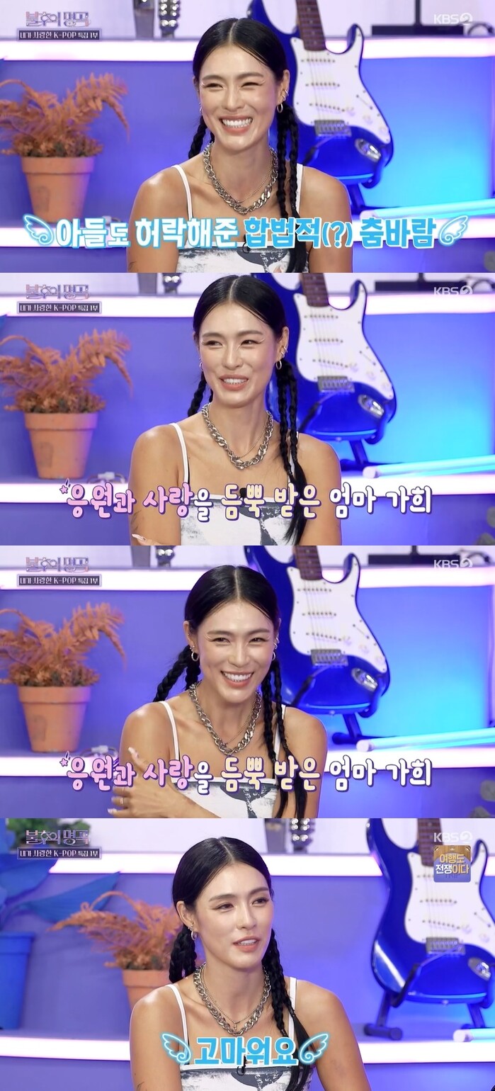 이에 이찬원은 "댁에 자녀들이 엄마를 응원해주냐"고 질문했다. 그러자 가희는 "아이들이 엄마 일하러 간다고 하니까 '또 춤추러 가냐'고 한다"고 해 웃음을 자아냈다.