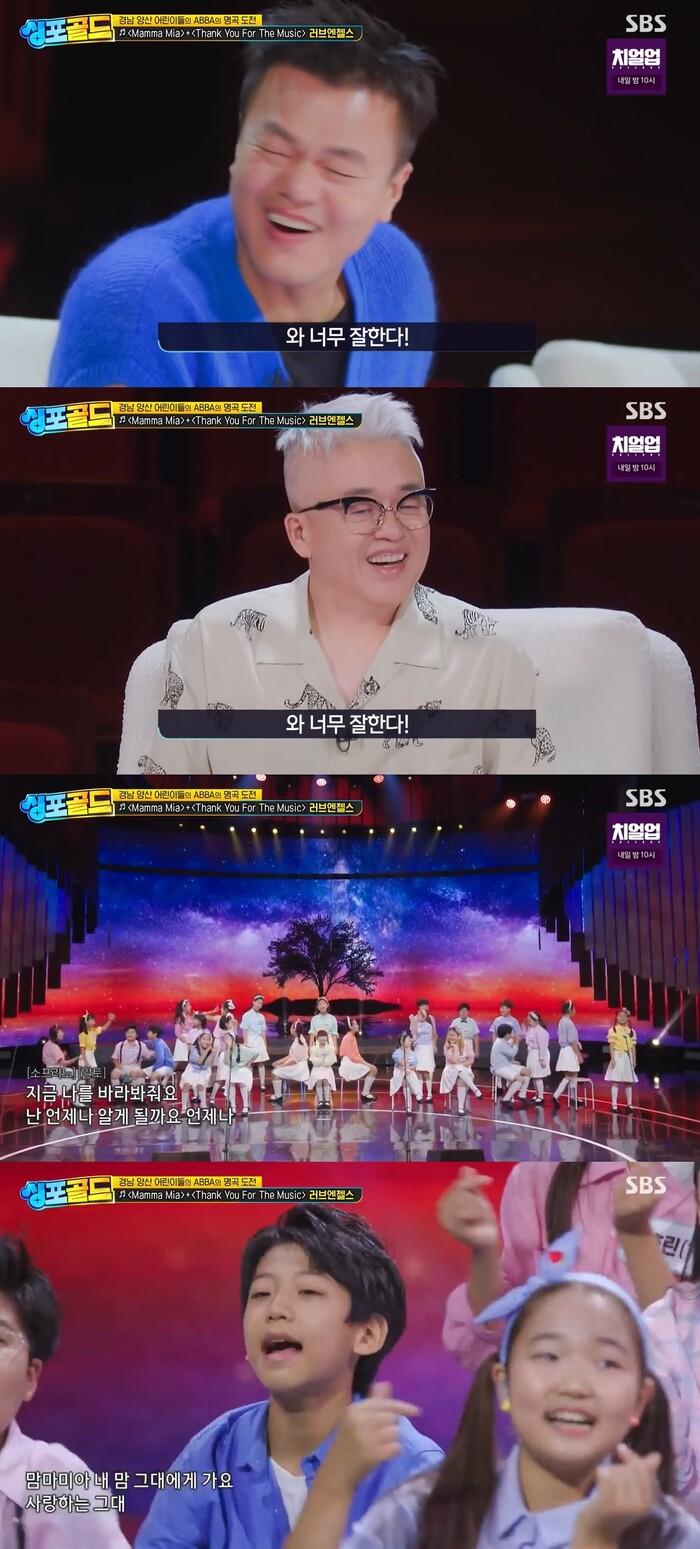 이날 방송에서 가장 먼저 무대를 꾸민 어린이 합창단 러브엔젤스는 'Thank you for the music'과 '맘마미아'를 선곡해 무대를 꾸몄다.