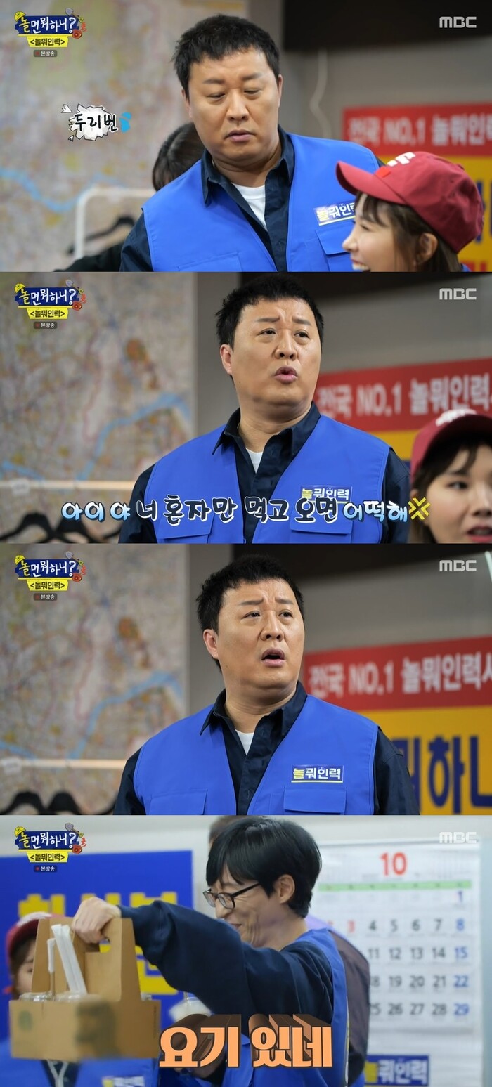 과거 정준하가 유재석을 제외한 멤버들에게 간장게장을 선물한 적이 있기 때문이었다. 이에 정준하는 "단체 톡방에 네가 없어서 그런거다"며 "난 직접 들고 찾아가려고 했다"고 했다.