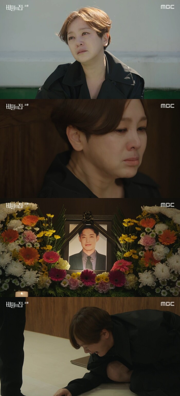 10일 저녁 7시 10분에 방송된 MBC '비밀의집'(연출 이민수, 김진형/극본 원영옥)124회에서는 남태형(정헌 분) 사망에 오열하는 함숙진(이승연 분)의 모습이 그려졌다.