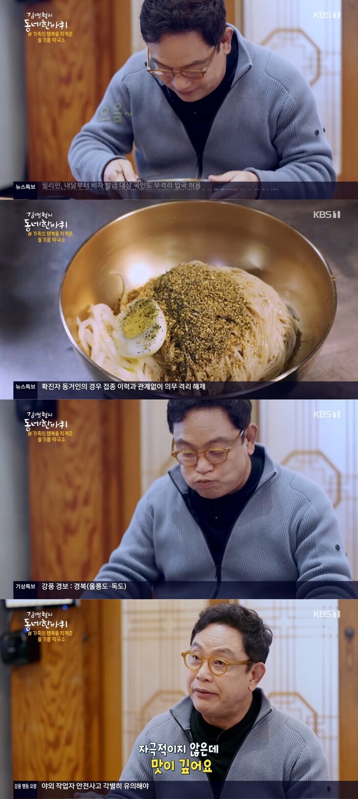 가족의 생계를 책임져준 든든한 셋째 아들 같은 존재라는 들기름 막국수를 먹은 김영철은 맛있는 먹방을 선보였다.