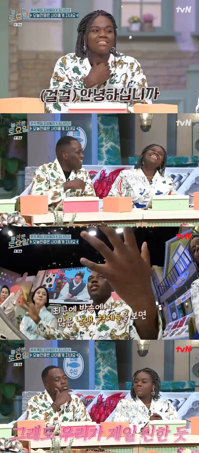 이에 조나단은 "최근 방송에 남매나 형제가 나오는 걸 보면 그래도 우리는 제일 친한 것 같다"며 "다른 분들 방송보면 우리 남매는 사이가 좋은 편이구나 하고 위안을 얻는다"고 말했다.