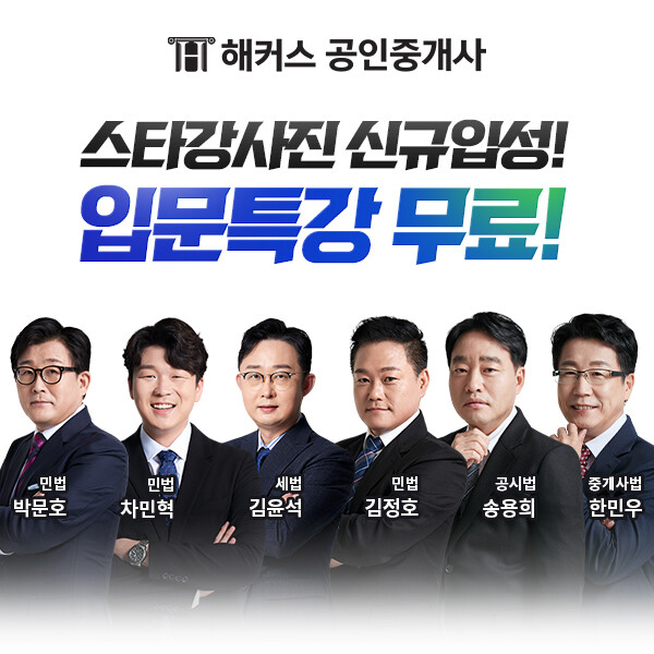 해커스 공인중개사가 신규 교수진 6인 입성을 기념하여 신규 교수진 입문 특강을 무료로 배포하는 이벤트를 진행한다고 밝혔다.