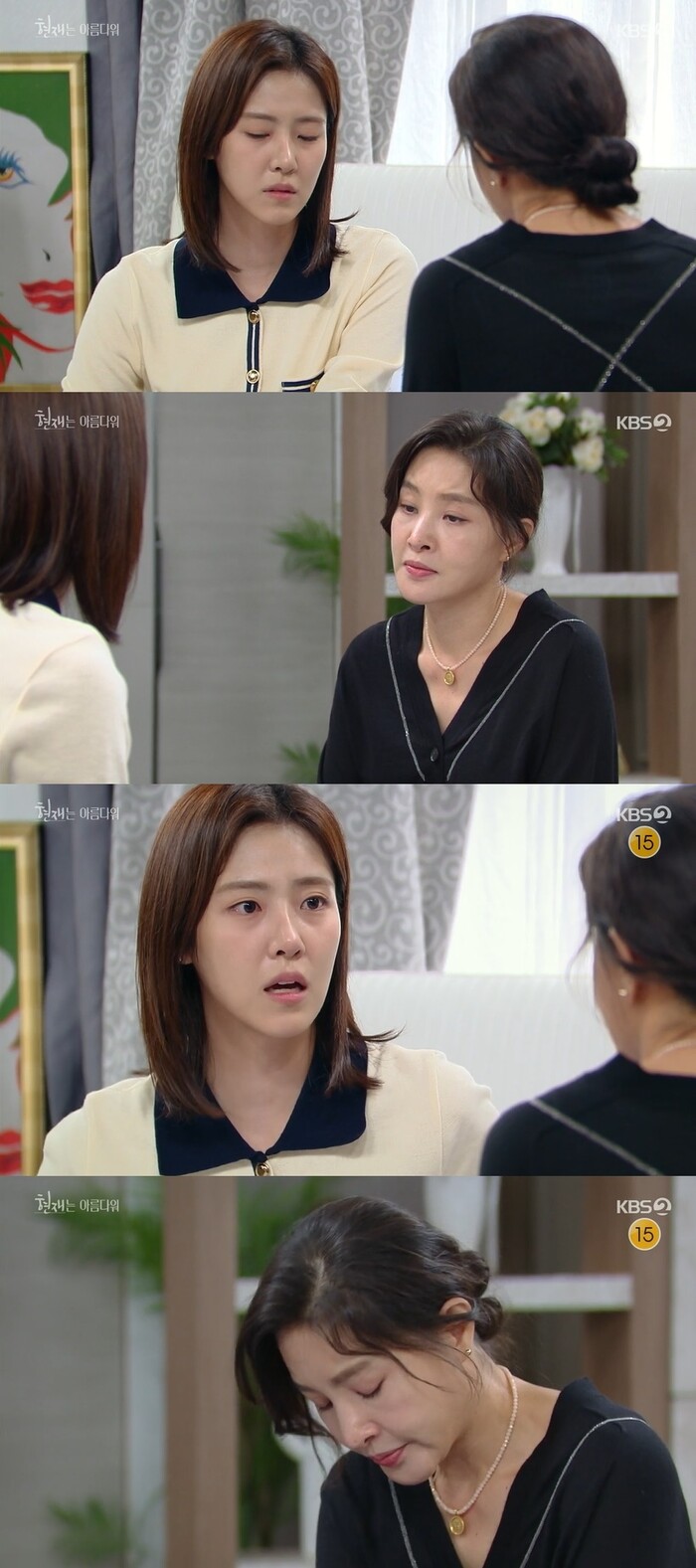 11일 밤 8시 방송된 KBS2TV '현재는 아름다워'(연출 김성근/극본 하명희)48회에서는 진수정(박지영 분)의 암 소식을 들은 현미래(배다빈 분)의 모습이 그려졌다.