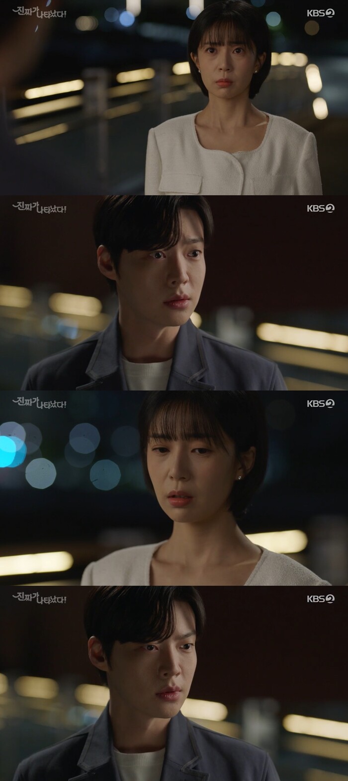 28일 밤 8시 방송된 KBS2TV '진짜가 나타났다'(연출 한준서/극본 조정주)20회에서는 김준하(정의제 분)가 오연두(백진희 분) 아이의 친부라는 사실을 알게 된 장세진(차주영 분)의 모습이 그려졌다.