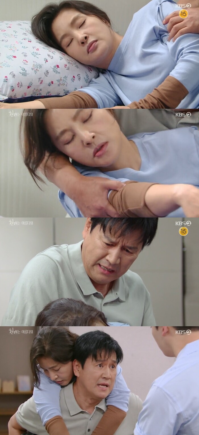 이날 방송에서 진수정은 침대에서 쓰러진 채 현진헌(변우민 분)의 외침도 듣지 못했다. 현진헌은 그런 진수정을 업고 병원으로 향했다.