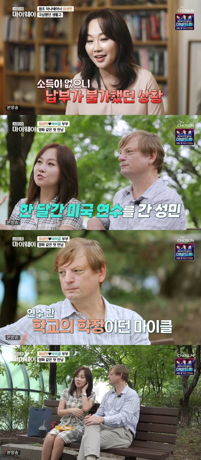 임성민은 "이후 마이클이 저만 보고 미국에서 한국으로 온거다"고 했다. 이에 마이클은 "직업은 또 구해도 되지만 반려자를 구하는 건 중요하다"고 했다.