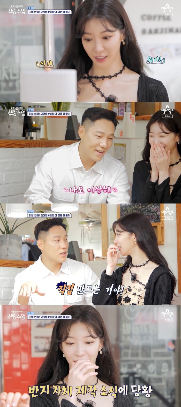 그런가 하면 두 사람은 커플링 제작 중 막간을 이용해 '연애고사'를 치르게 됐다. 질문지를 확인한 모태범은 "너무 노골적이다"라며 "이거 완전 19금 아니냐"며 혀를 내둘렀다. 실제로 질문지에는 '연인과의 첫 키스를 맛에 비유한다면?', '결혼 전 동거에 대한 생각은?' 등 구체적인 질문들이 들어있었다.