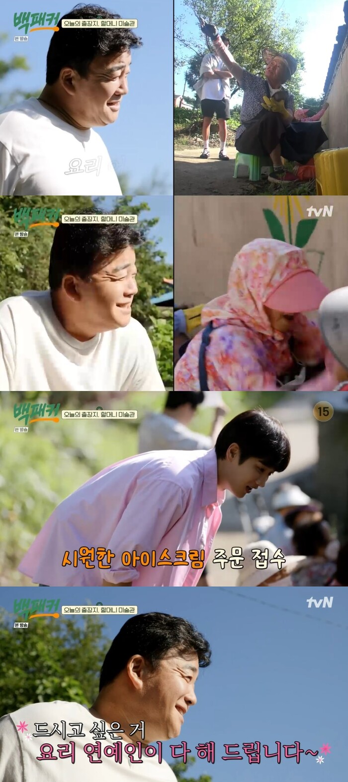 8일 밤 8시 40분 방송된 tvN '백패커'에서는 백종원, 오대환, 안보현, 딘딘이 할머님들을 위해 나선 모습이 그려졌다.