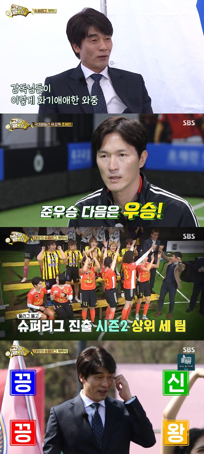 불나방의 새 감독 하석주에 이어 국대패밀리의 새 감독 조재진이 등장했다. 조재진은 긴장된 얼굴로 기존 감독들과 인사를 나눴다.