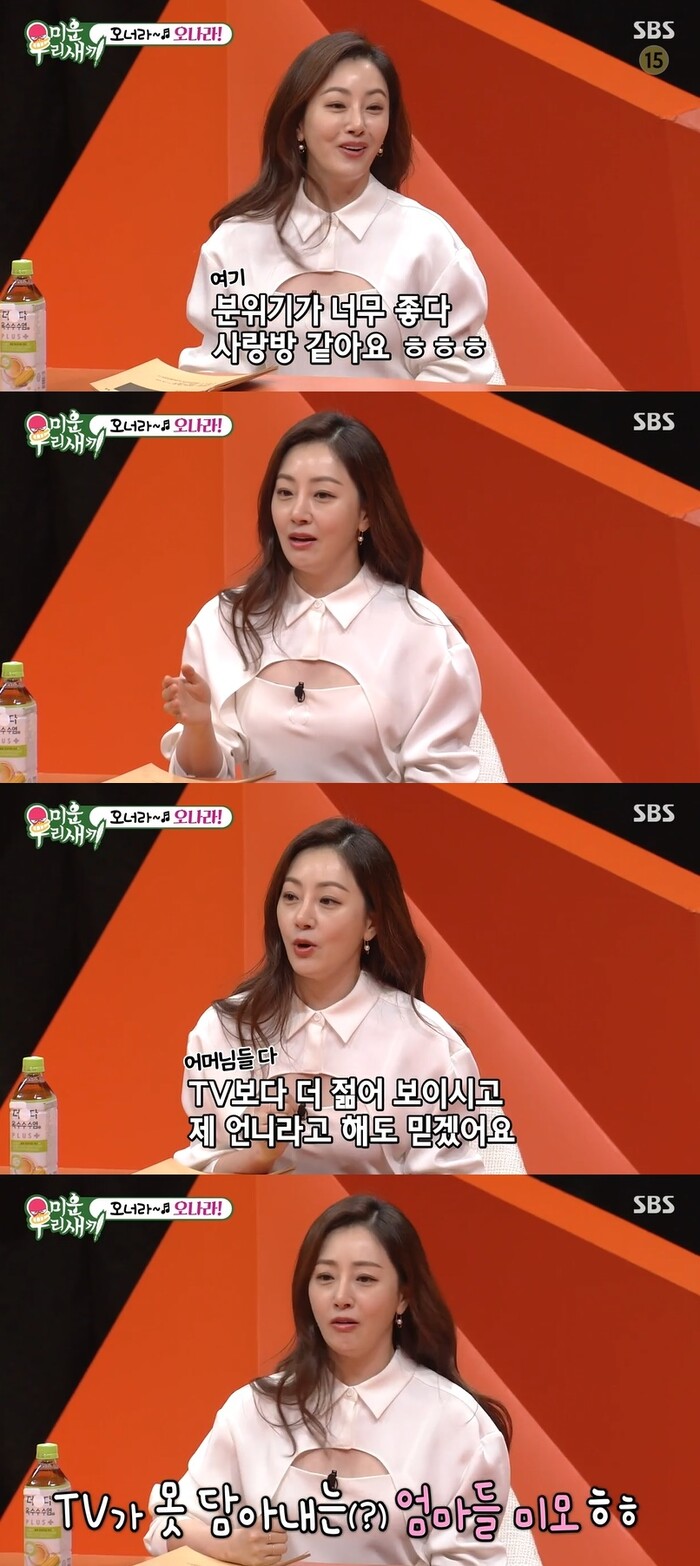 이날 방송에서 오나라가 등장하자 모벤져스는 "실물로 보니 훨씬 예쁘다"라며 오나라의 미모에 감탄했다. 그러자 오나라는 "실물이 카메라에 왜 잘 안나오는지 모르겠다"며 "어머님들도 TV보다 더 젊어 보이시고 언니라고 해도 믿겠다"라며 너스레를 떨었다.