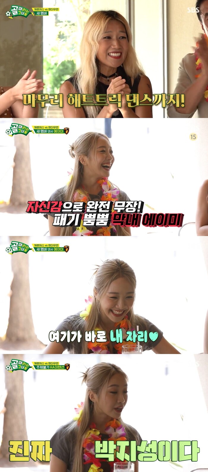 또 에이미는 "다른 팀보다 좋은 게 텐션이 높고 우울해하지 않아서 내 자리다"고 하기도 했다. 이어 하석주 감독이 골 넣으면 영웅이라고 하자 에이미는 "영웅 너무 되고 싶다"며 의지를 드러내기도 했다.