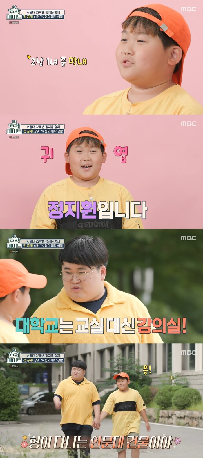 이날 방송에서 정지웅은 11살 막둥이 동생에게 자신의 학교인 서울대를 소개했다.