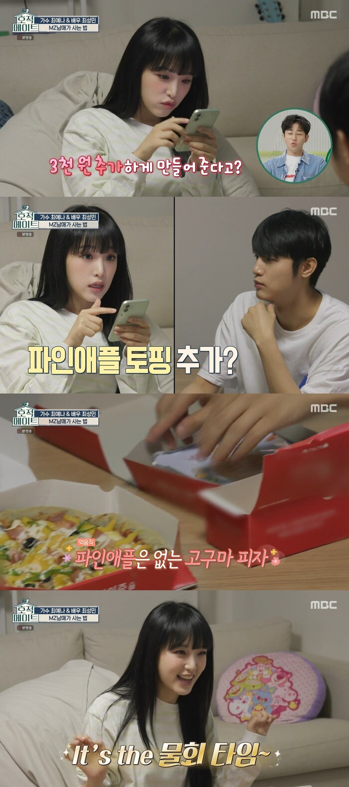 하지만 두 사람의 입맛은 상극이었다. 최예나는 고구마피자만 먹고 최성민은 고구마 피자만 안먹는 것이었다. 이에 최예나는 그동안 피자먹을 때 마다 양보했다고 억울해 하자 최성민은 고구마 피자를 시키라고 했다. 하지만 파인애플은 절대 안된다고 했다.