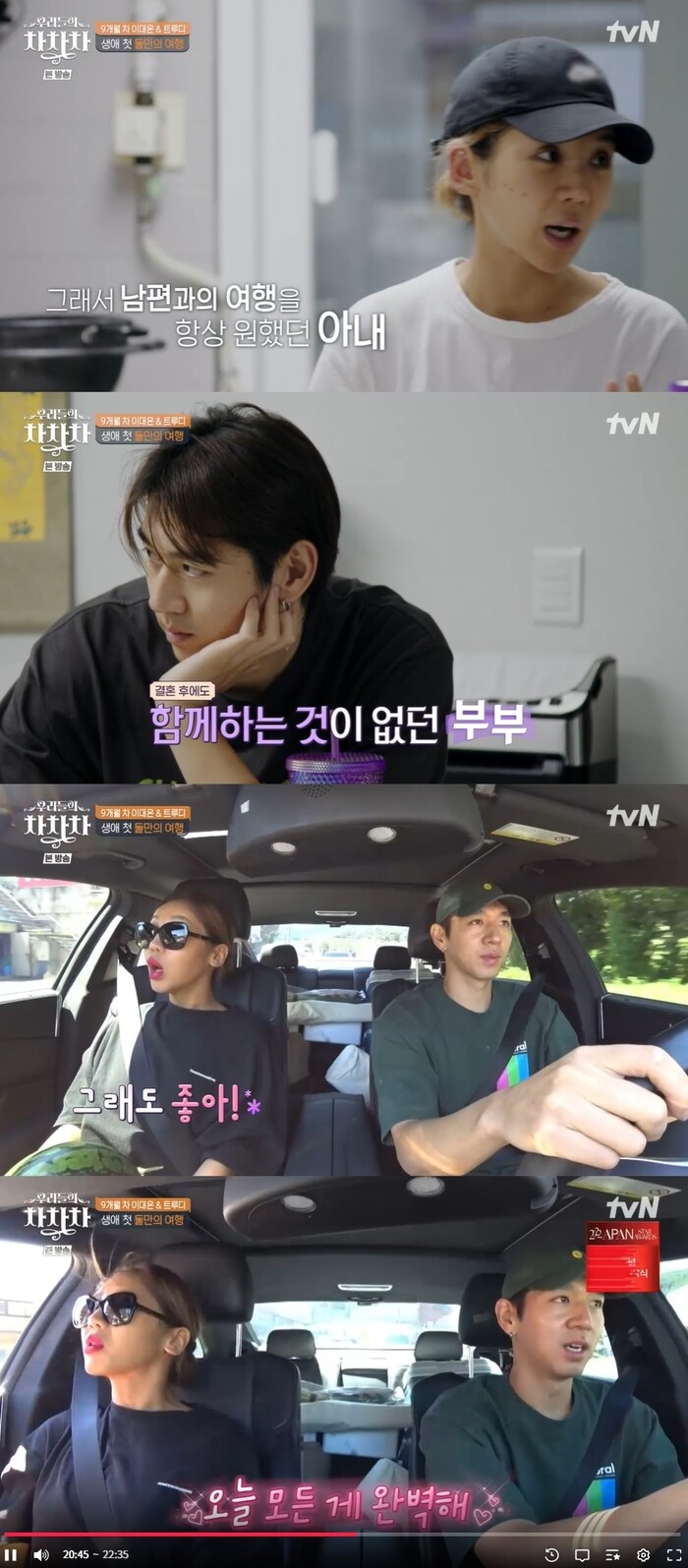 26일 밤 8시 40분 방송된 tvN '우리들의 차차차'에서는 이대은과 트루디가 만난 지 5년만에 처음으로 둘이서 여행을 떠나는 모습이 그려졌다.