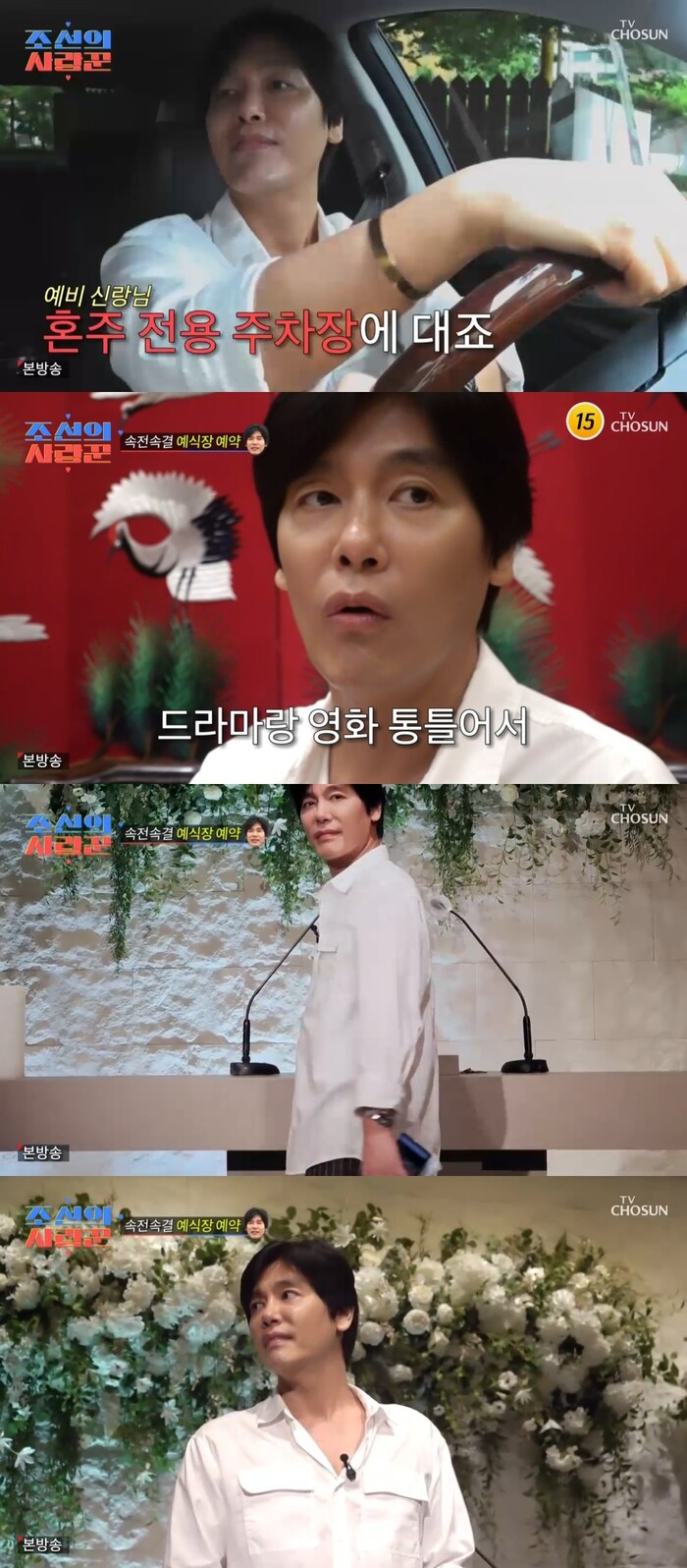 최성국은 예식장을 찾아 둘러보기 시작했고 혼주 측 주차 자리에 차를 대고 부끄러워 하기 시작했다.