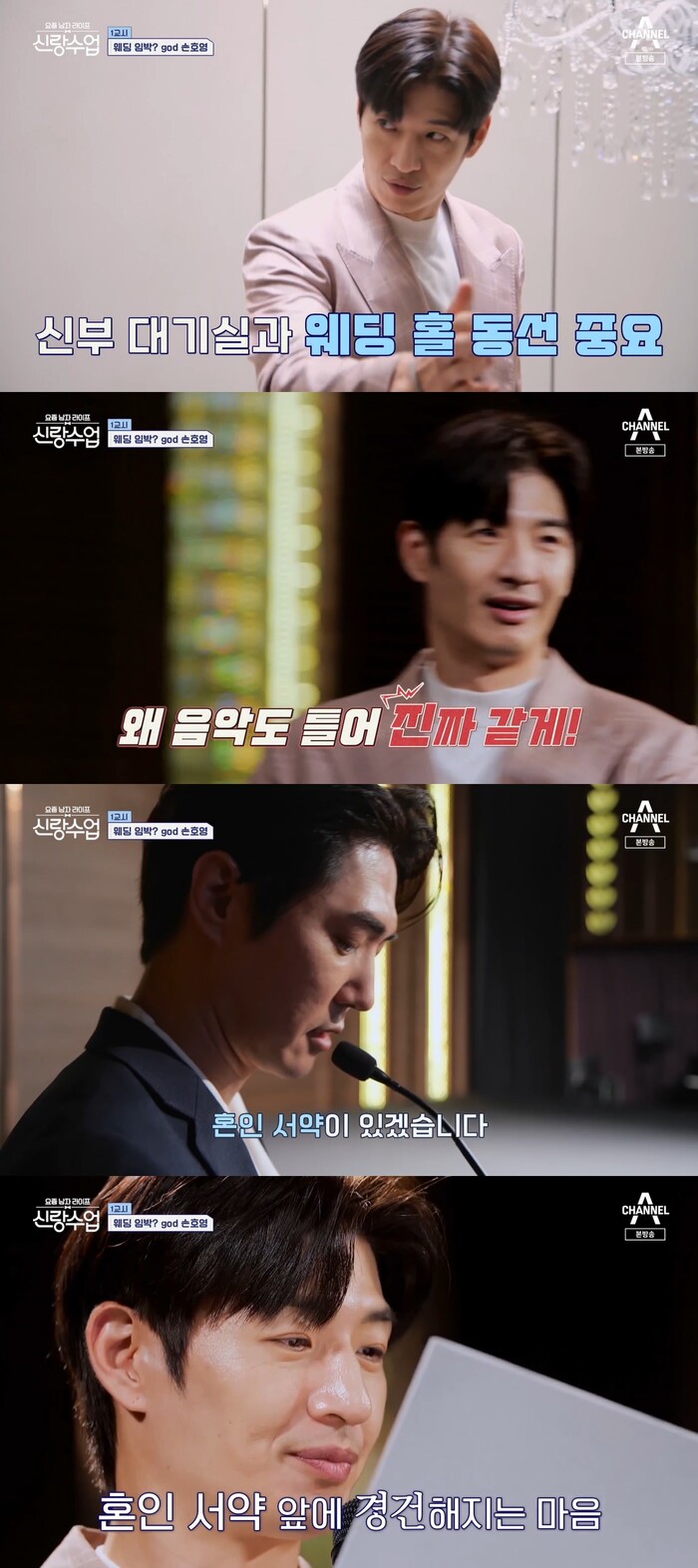 28일 밤 9시 20분 방송된 채널A '신랑수업'에서는 결혼식장을 둘러보는 손호영과 데니안의 모습이 그려졌다.