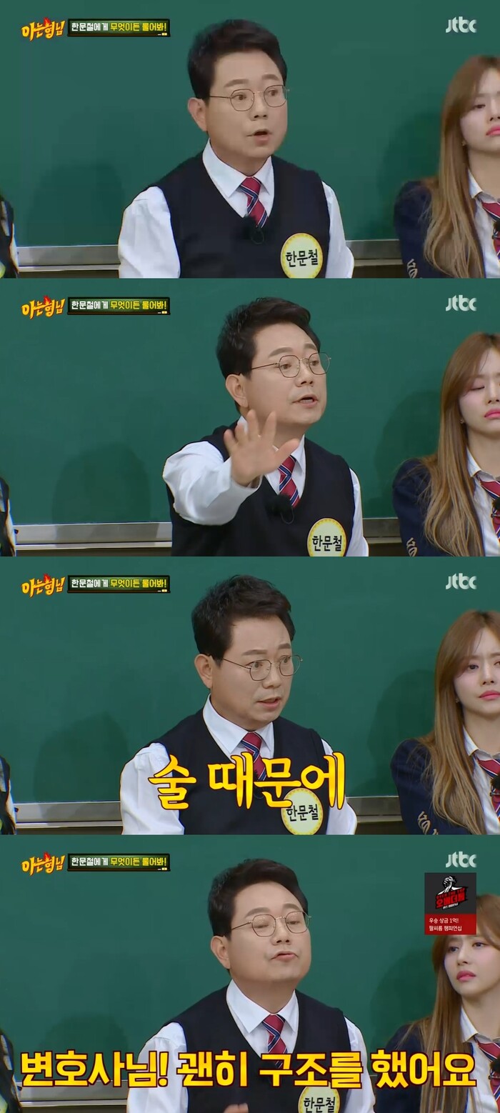 이에 이수근이 "운전자가 사모님이었냐"라고 묻자 한문철은 "우리 집사람은 운전 안 한다"라고 말했다.