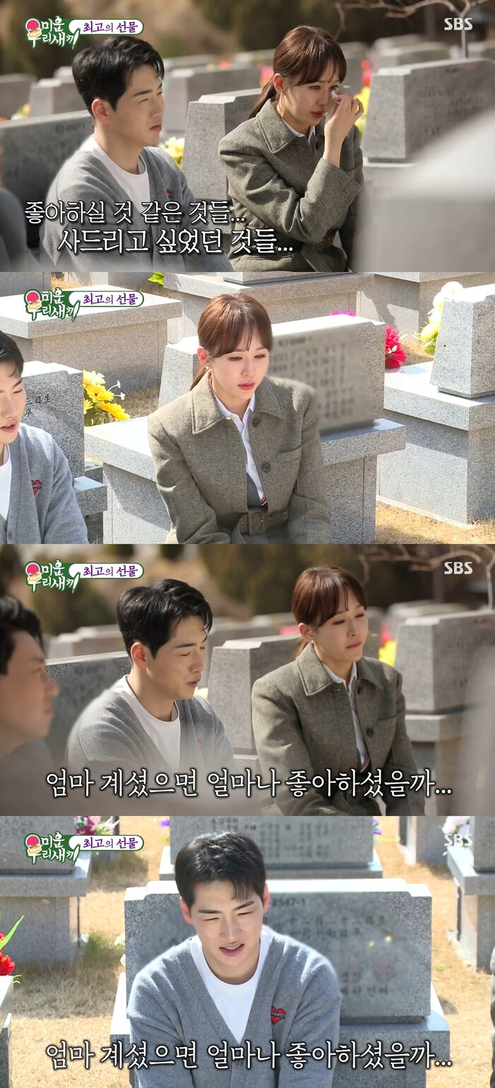 박군은 어머니 묘원에 도착하자 "엄마 아들 왔다"고 했고 한영은 "사진으로만 뵈었다"고 말했다.