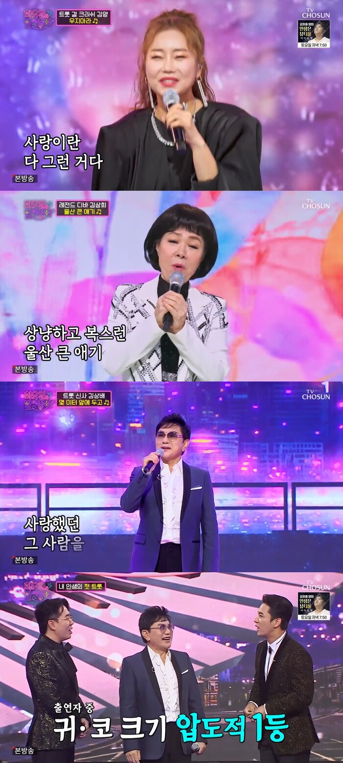 그런가하면 트롯퀸 은가은은 김상배의 '안돼요 안돼' 무대에 숨겨진 비하인드 스토리를 밝혔는데 은가은은 경연을 앞두고 직접 김상배의 연습실로 찾아가 1:1레슨을 받았다고 전했다.