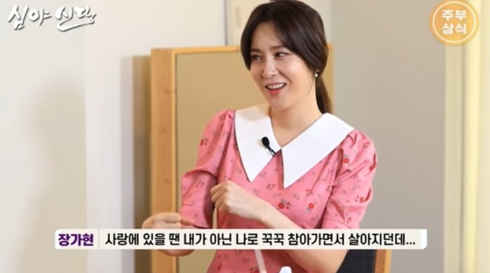 장가현은 "남편은 정말 자상하고 가정에 충실한 사람이었다"며 "아버지와 비슷한 부류의 사람과 사랑에 빠지려고 하지 않았고 잘 만나 불같은 사랑을 했는데 결국 이혼했다"고 했다.