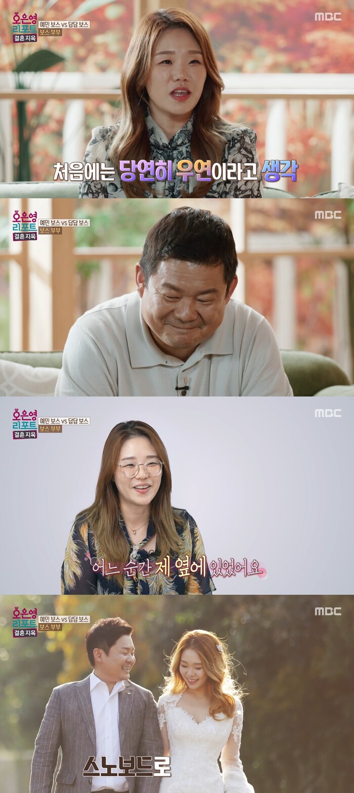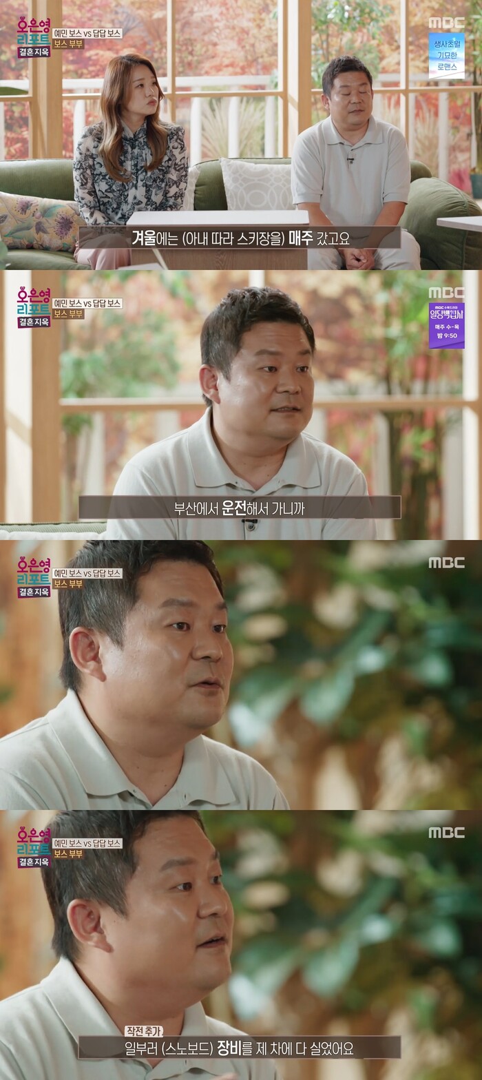 이날 방송에서 스노보드 동호회에서 처음 만나 남편의 열렬한 구애로 결혼에 골인했다는 결혼 5년 차 부부가 등장했다. 행복하기만 할 줄 알았던 결혼 생활도 잠시 부부는 밥을 먹고, 청소를 하고, 설거지를 하는 등 일상의 매 순간이 갈등이라며 고민을 털어놨다.