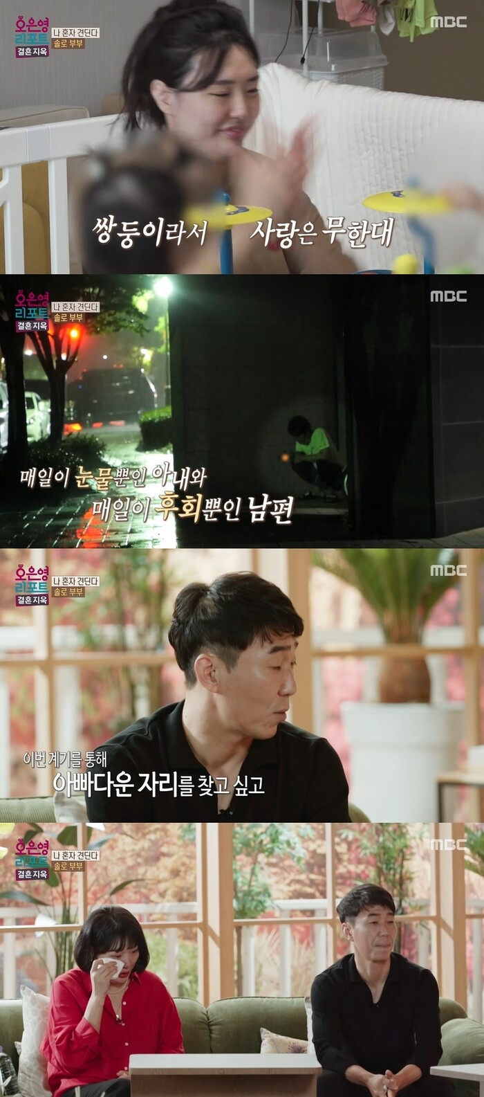 두 사람은 시험관 시술로 어렵게 얻은 15개월 쌍둥이 남매를 키우고 있다는 결혼 7년 차 부부였고 아내는 아이들을 위해 최선을 다하는 엄마였다. 실제로 공개된 일상 영상에서 아내는 두 아이를 보살피느라 단 한 순간도 쉬지 않는 모습을 보였다. 누구보다 밝고 씩씩하게 육아하던 아내는 육아 도중 돌연 오열하기 시작했다. 혹여나 아이들이 눈치챌까 봐 숨죽여 울다가도 엄마가 울어서 미안하다며 아이들에게 사과하기도 했다.
