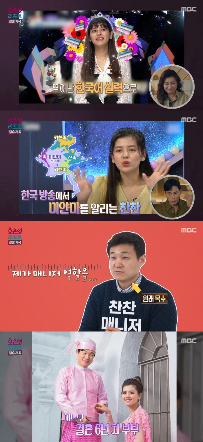 이날 방송에서 미얀마에서 봉사활동을 하다 눈이 맞은 아내 찬찬과 남편 김민수는 국경을 초월해 각별한 사랑을 나눠 10년이란 기나긴 연애 끝에 결혼까지 성공했다고 전했다.