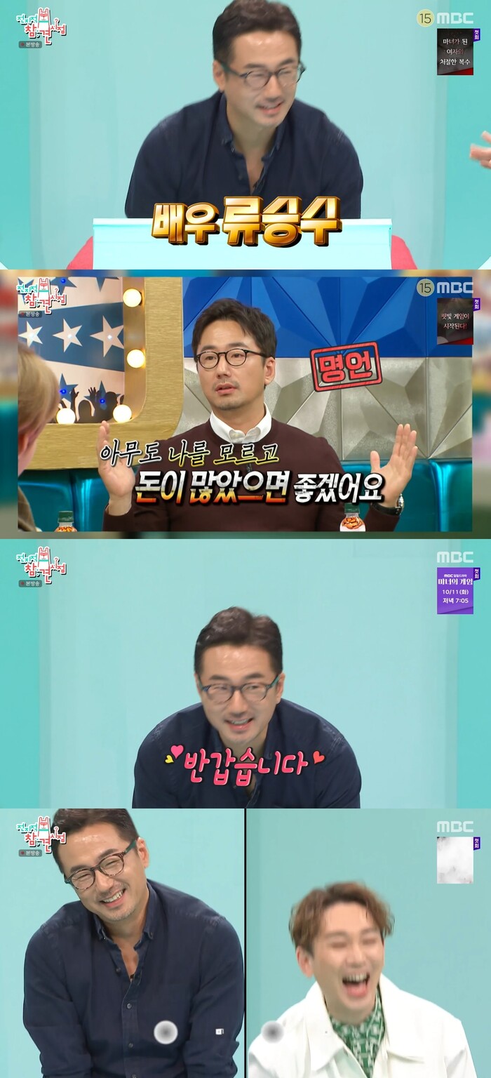 이날 방송에서 '아무도 나를 모르고 돈이 많았으면 좋겠다'라는 명언을 남긴 류승수가 등장해 눈길을 끌었다.