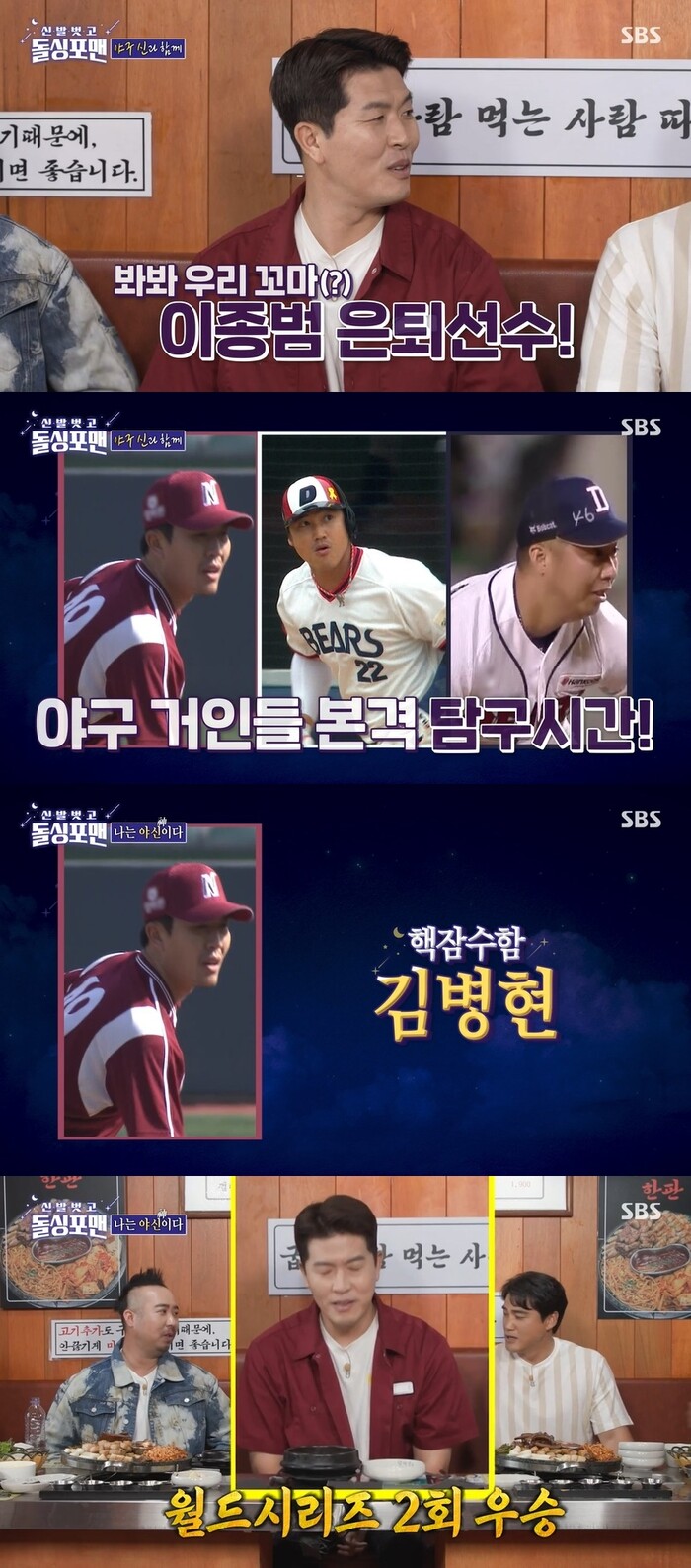 18일 밤 11시 방송된 SBS '돌싱포맨'에서는 홍성흔, 김병현, 유희관의 등장이 그려졌다.