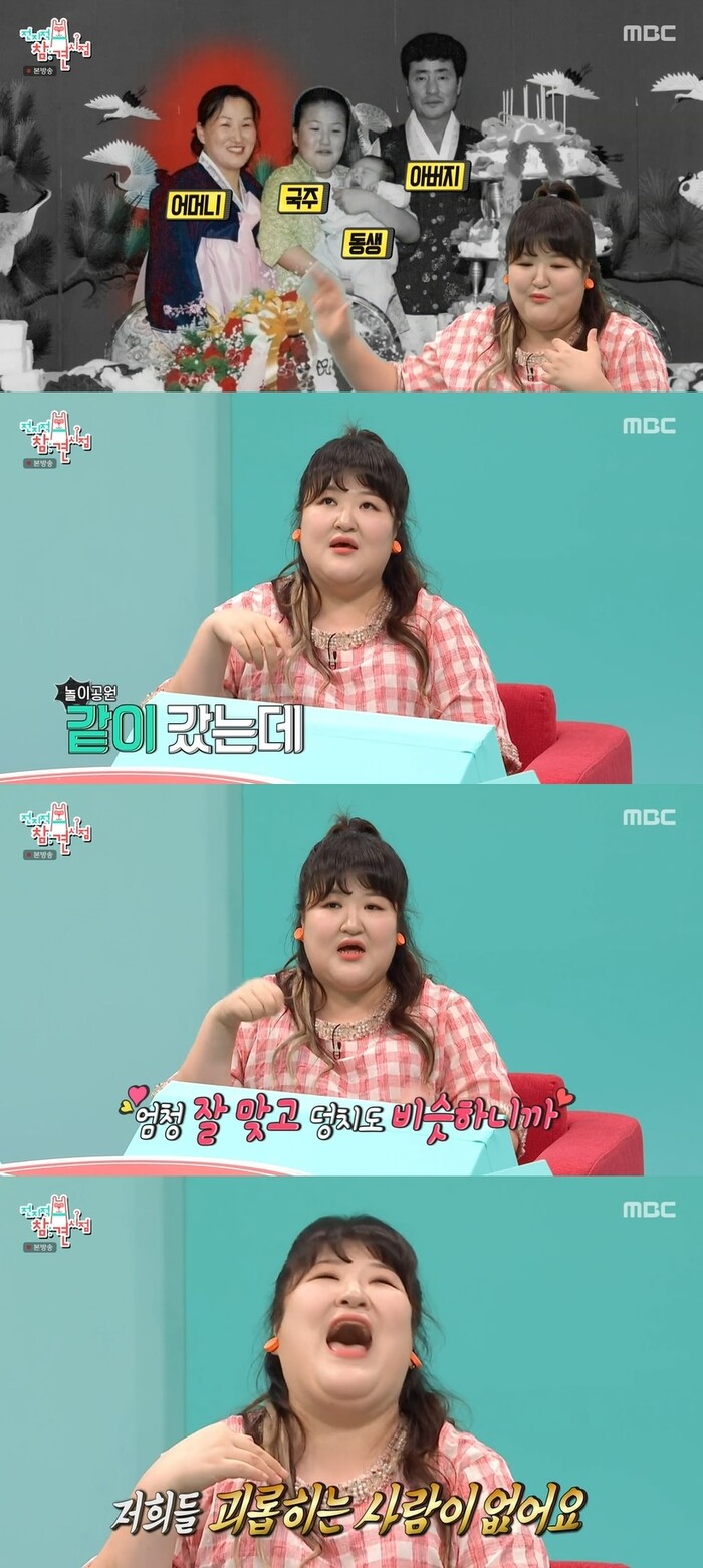 이국주는 "어렸을 때부터 동생을 많이 돌봐왔다"며 애정을 드러냈다. 이에 송은이는 "진짜 둘이 애틋한게 저는 남동생과 놀이공원에 가본 적이 없다"며 "근데 이국주는 최근 남동생과 다녀왔더라"고 했다.