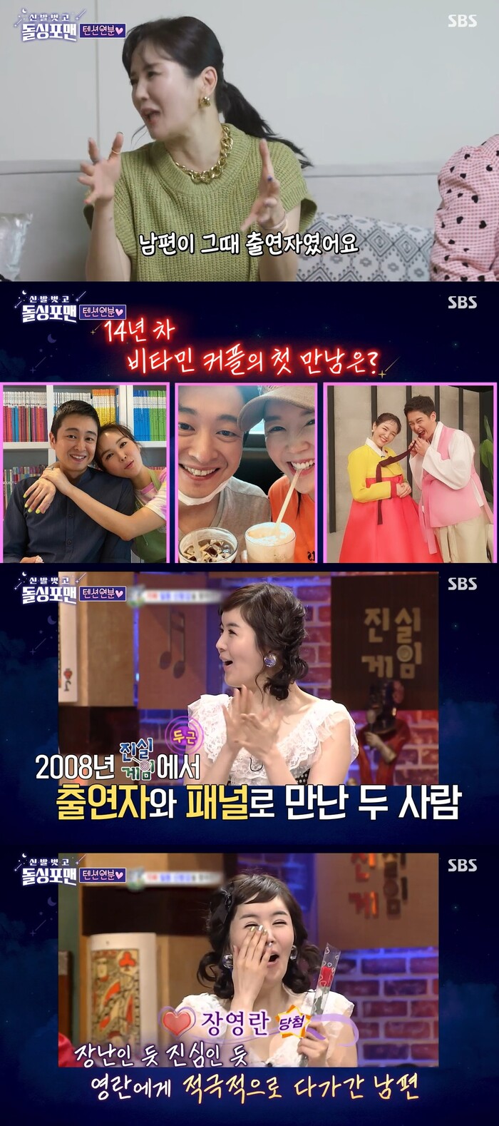 이날 방송에서 탁재훈은 장영란이 등장하자 "남편은 어떻게 만난 거냐"고 물었다. 이에 장영란은 "SBS '진실게임'에 남편이 출연자로 나왔었고 중간에서 작가님이 연결해 주셨다"고 답했다.